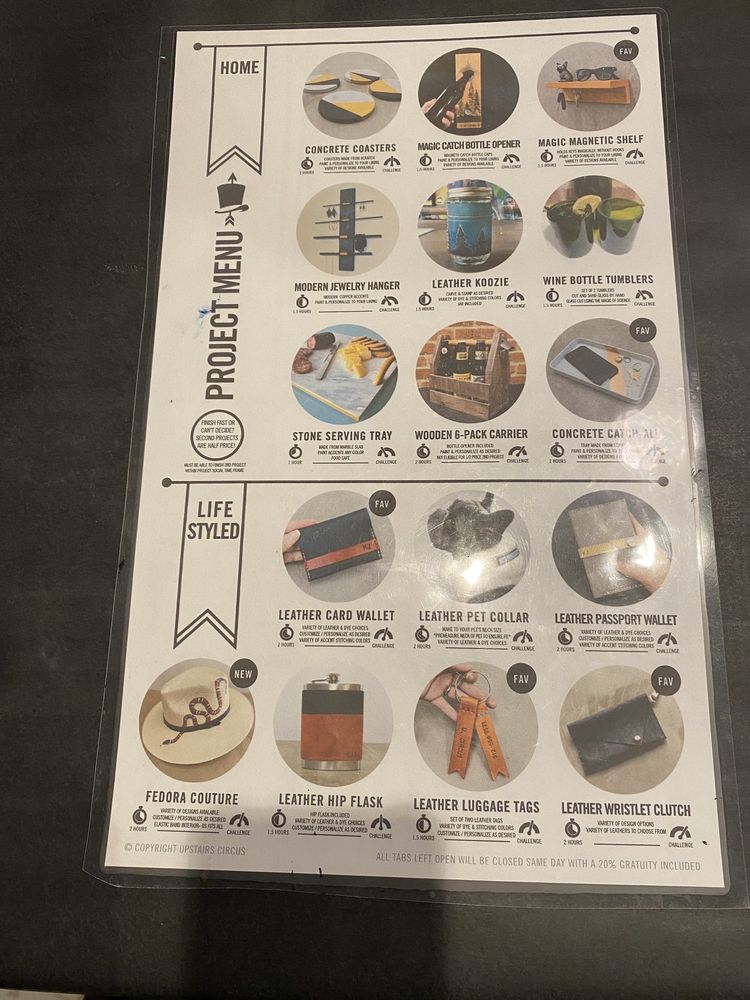 Upstairs Circus is a vibrant bar located in Minneapolis, MN that offers a unique combination of crafting and cocktails. The menu features a variety of craft options, including painting canvas, wood art, string/yarn art, jewelry, keychains, and more. Customers have praised the fun atmosphere and affordable prices, making it a great spot for group gatherings, bachelorette parties, and corporate events. The staff is friendly and helpful, ensuring a positive experience for all guests. In addition to crafting, Upstairs Circus also boasts a full bar with a wide selection of drinks, including fun alcohol, wine, and non-alcoholic options. The space is perfect for a date night or a fun afternoon with friends, offering a creative and entertaining experience that goes beyond your typical bar scene.